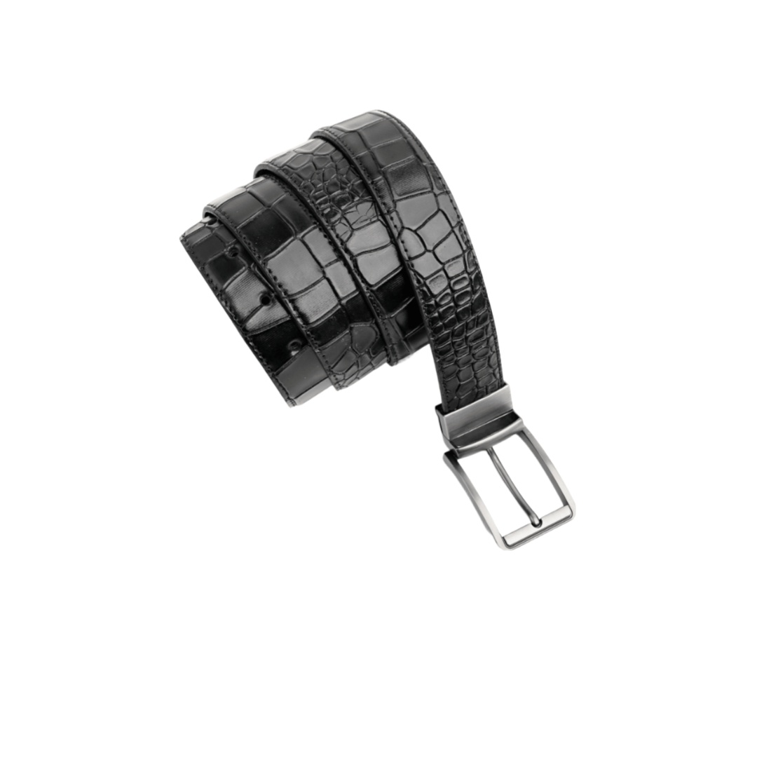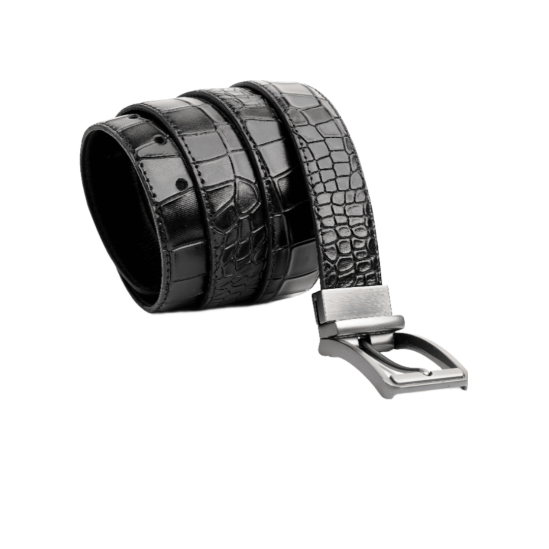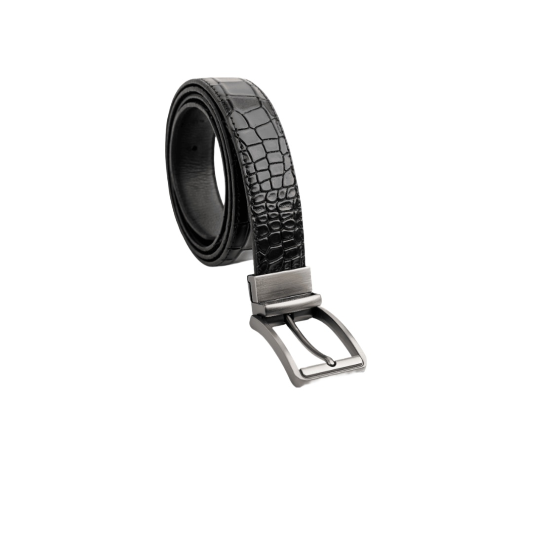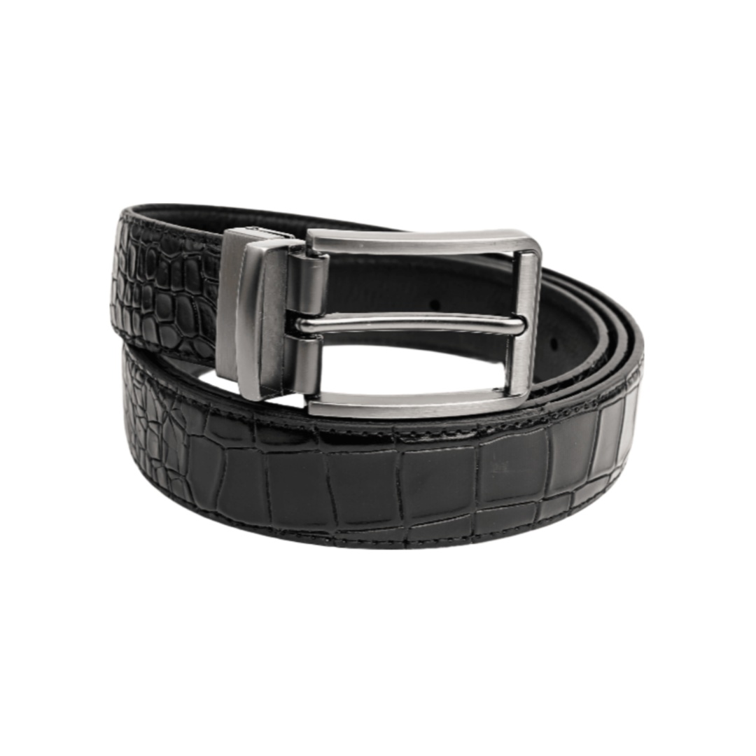 Black Mens 2in1 Crocodile Textured Style Reversible Leather Belt